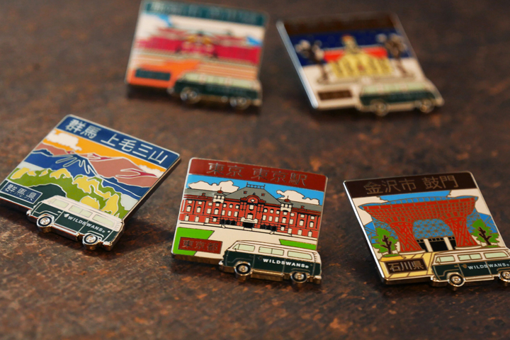WILDSWANSオリジナルピンズの一つであるTOUR(ツアー)シリーズは、ブランド創立25周年のサンクスツアーをコンセプトに、WILDSWANSのワーゲンバスが都道府県各地を回る様子を描いたシリーズです。そのTOURシリーズに、新たに3種類のピンズが加わります。(WILDSWANS オリジナルピンズの詳細はこちらをご覧ください。)