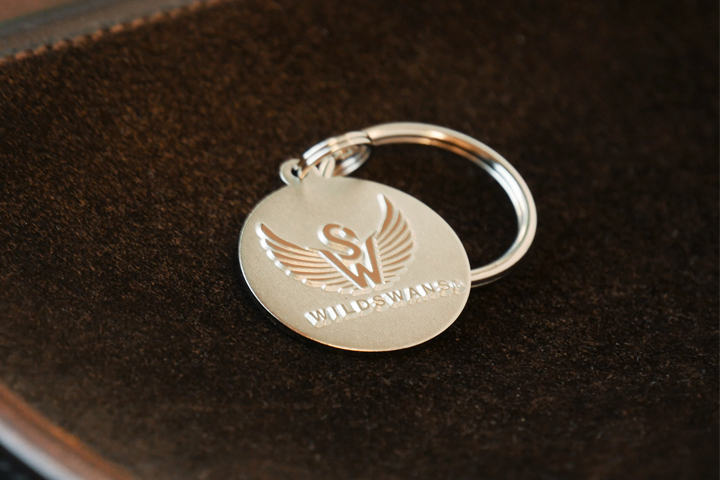 ブランドにまつわるエンブレムを刻印したEMBLEMシリーズは、おかげさまで発売以来、大変ご好評をいただいております。1998 Ver.は白鳥をモチーフにしたブランド初期のロゴマークです。扱いやすいキーリングタイプは、お手持ちの金具やキーホルダーに取り付けてお使いいただけます。