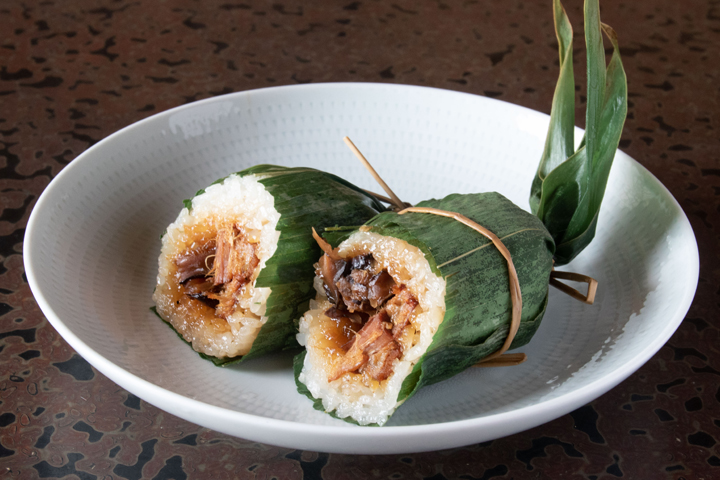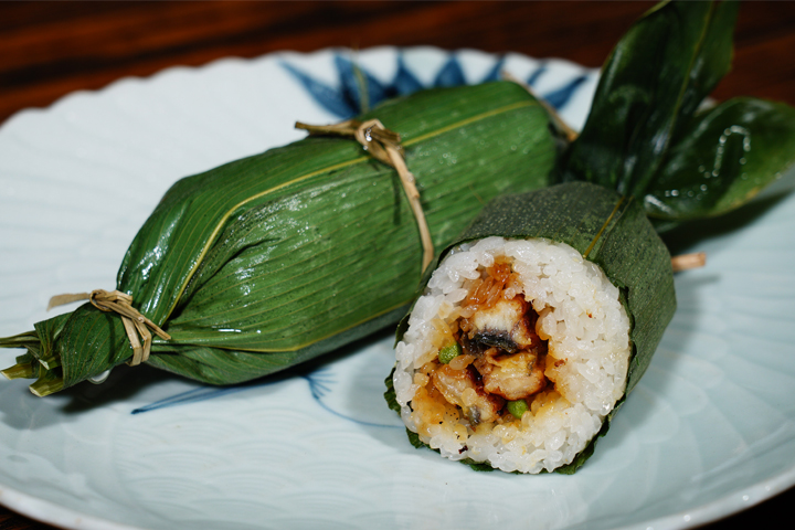 三春の看板メニュー、「笹巻きご飯」はもち米と具材を笹の葉で包み、い草で包んだシンプルな料理です。シンプルであるがゆえに素材にはこだわっており、地元茨城の名産をはじめ、全国各地の厳選された素材を仕入れています。当初は浜名湖産の鰻を使った笹巻きご飯のみでしたが、現代の3代目女将・渡邊映理子さんが茨城県の銘柄豚を生かした笹ポーク巻きご飯を考案したところ新たな人気メニューとなり、2013年度のいばらきデザインセレクションで県知事賞に輝きました。