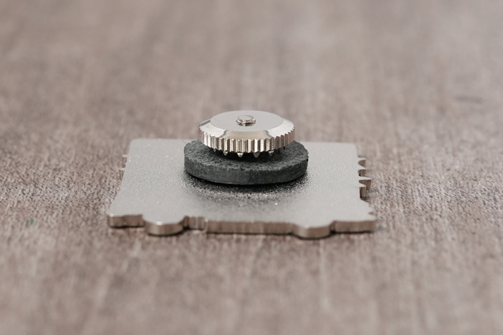 各ピンズには革製のスペーサー(直径約15mm、厚さ約2mm)が1枚付属します。ピンズと留め具の間に差し込むことで、ピンズを装着した際に針先の飛び出しを軽減します。留め具の凹凸にしっかりと噛ませるため、革の床面(裏面)が上向きになるように挟み込んでお使いください。