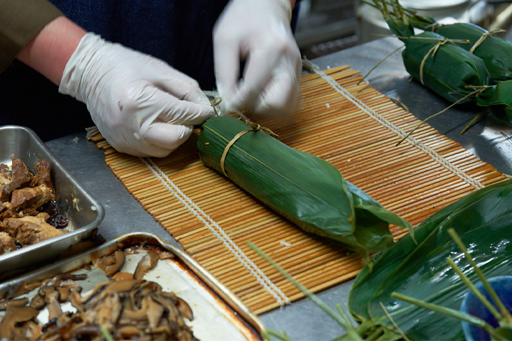 女将自らが1本1本手作りする看板メニューである、笹巻きご飯。
