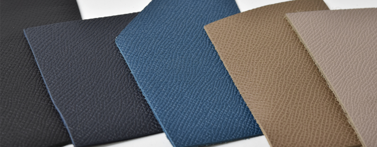 どちらのカーフも、くっきりとした四角や三角のシボ(凹凸)が並ぶ高発色の上品な革です。このシボは型押しにて加工をされています。型押しとは、革の銀面(表面)に熱した型版をプレスすることにより、銀面に立体的な凹凸を施す方法です。型押しは一般的に使われるシボの加工方法ですが、この方法で加工をされた革の繊維はギュッと締まり、ハリ感が生まれます。