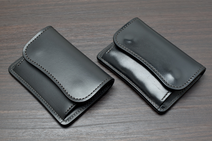 数か月の使用によって同じ皮革とは思えない程に表情を変えています。 光沢によって色味はより深まったように感じられ、皮革そのものの迫力が増して見えるほどです。