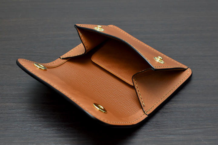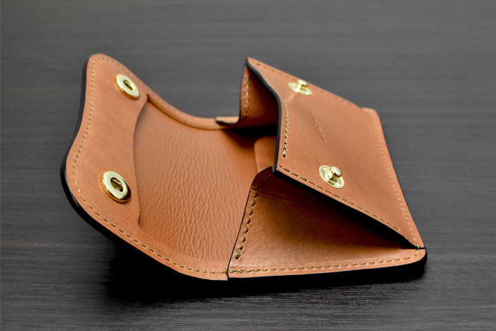 内装は左右にマチの付いたポケットの形状になっています。 手前に大きく開きますので中身の確認もし易く、硬貨の出し入れも容易に行うことが出来ます。