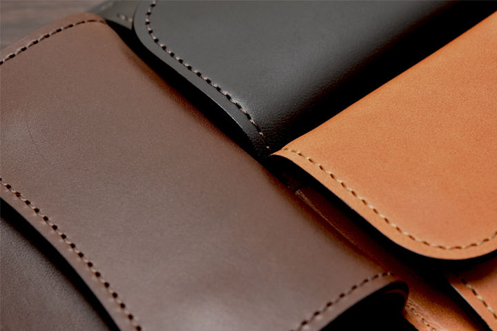 サドルレザーの質感はハリが強く、硬い革であると同時に程よいバネや弾力を持った素材です。 皮革の表面はベタ付くことなくさらっとした手触りですが、皮革内部にはしっかりと油分を蓄えている様子も伝わって参ります。