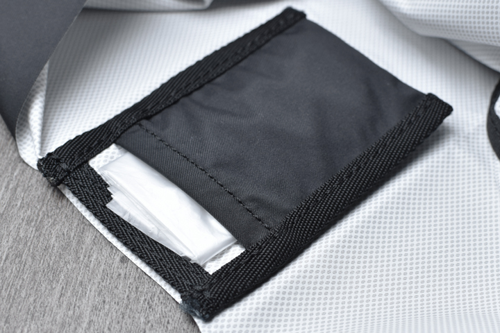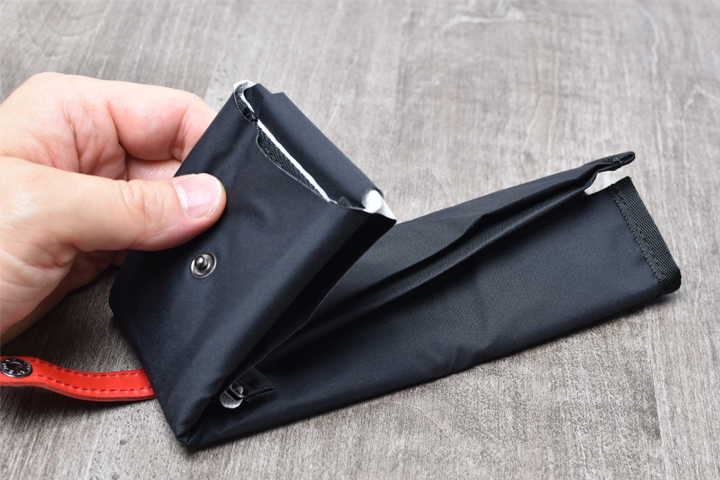 このポケットはお惣菜や生ものなどを包む薄手のポリ袋を入れるためのポケットになっており、予め小さく畳んでしまっておくと買い物時にとても便利です。