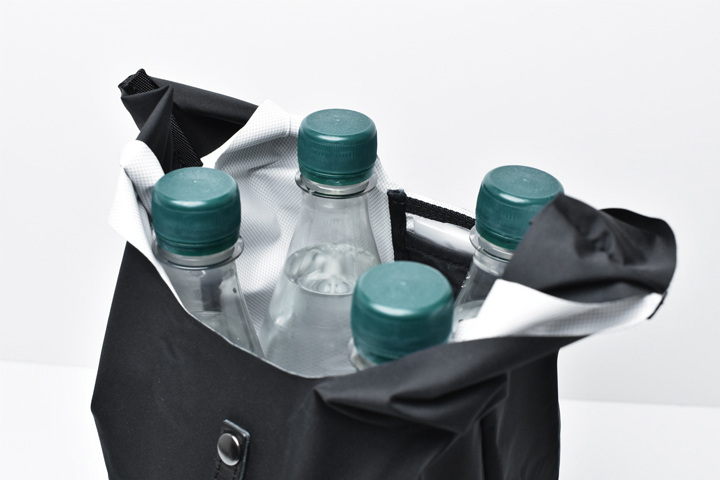 裏地はポリウレタンコーティングが施されているために汚れや水分が付着しても簡単に拭き取ることが出来ます。 ケアが容易で常に清潔に保つことが出来ますので、食材やランチボックスなどを収める際にも安心です。