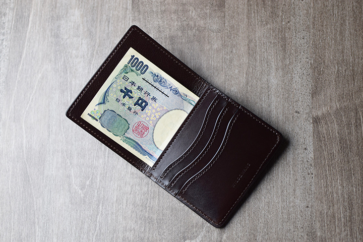 また、本体のサイドには紙幣を収納する札室がありますが、携帯性に特化しているので一番大きな紙幣の一万円札がジャストなサイズ感となります。