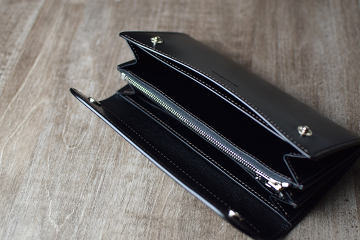 内装の収納部は札室、カード収納部、コインケース等5部屋で構成されています。それぞれの収納スペースが機能的で使いやすさを追求した仕様となります。