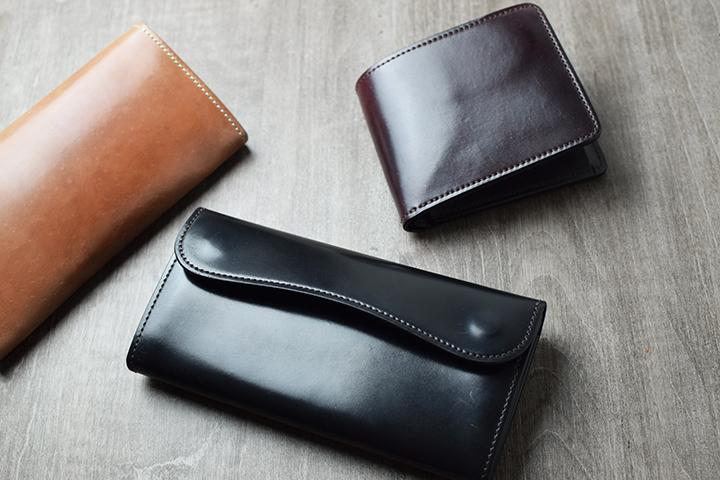 シェルコードバンのエイジングは艶だけでなく、質感の変化も魅力的です。特に手に馴染みやすい形状のCYLINDER-Sは、ご使用頂くことで、もっちりしたシェルコードバン特有の質感をお楽しみ頂けます。 少しご案内が長くなりますので、今回はここまでとさせて頂きます。残りの5品と全体の販売方法については、次回ご案内させて頂きます。