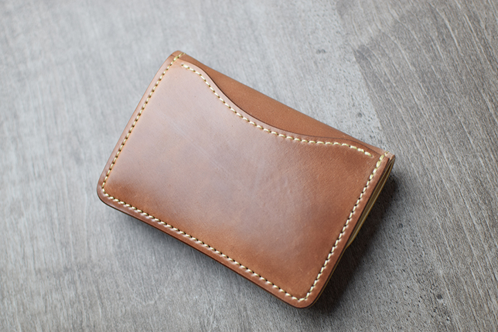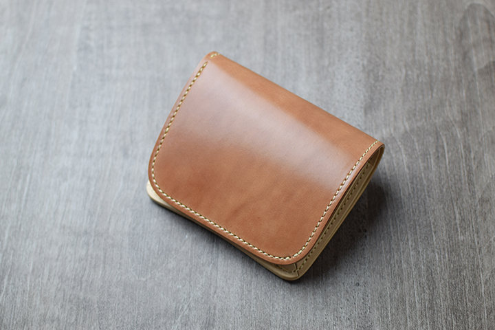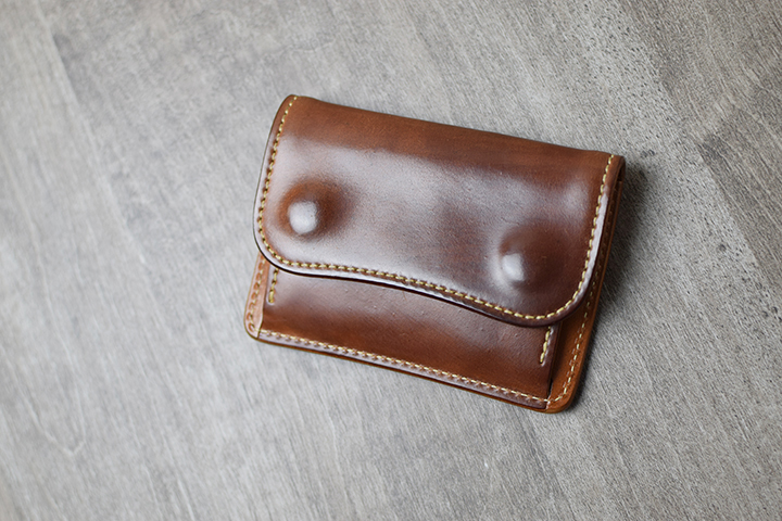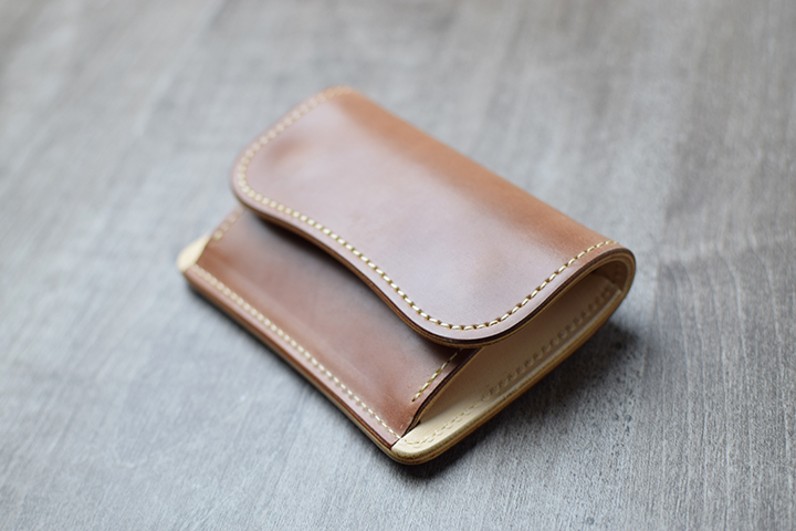 フラップ、背面、コインケースの前身にシェルコードバンのナチュラルを用いたTONGUEです。背面のカードポケットには非接触型のIC機能付きカードなどの収納がおすすめです。