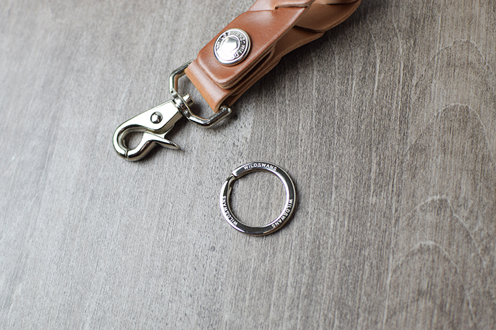シェルコードバンを編み込んで製作したキーホルダーです。WILDSWANSでは珍しい縫製を施さない仕様ということもあり、比較的スッキリとした見た目です。小さなアイテムではありますが、強度が高く、永くご使用頂けます。