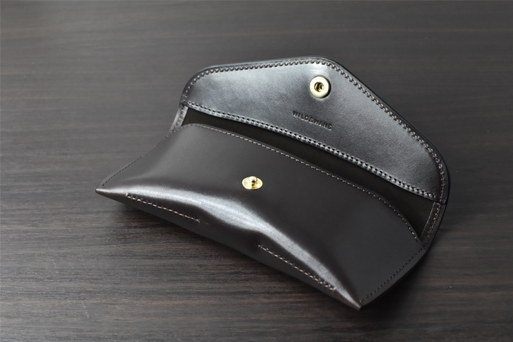 金子眼鏡株式会社とのコラボレーションで誕生した眼鏡ケースを、サドルプルアップで久しぶりにご用意させて頂きました。1枚の革で眼鏡をぐるっと包み込み、ホックでフラップを留める形状には、WILDSWANSらしい丸みを帯びたディティールが取り入れられています。