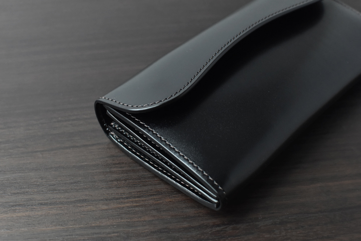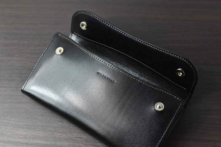 WILDSWANSの中で屈指の収納量を誇る長財布です。その名の通り波を打つかのようなフラップは、無骨な中にもエレガントさが垣間見える、長財布好きのお客様から長く愛されるアイテムです。