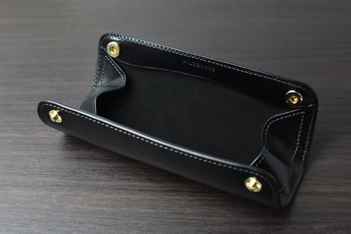 フラップを大きく開けば、スエードが貼られた上品なペントレイとしてもお使い頂けます。