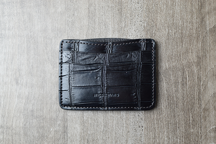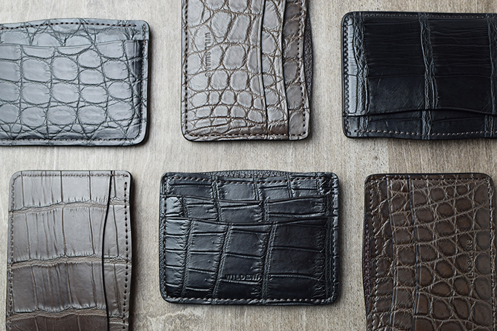 EDWARDは、WILDSWANSの新しいカードケースです。今回メイン素材にはクロコを使用しますが、WILDSWANSで主に使用しているクロコは、アフリカ原産のナイルクロコです。ナイルクロコは比較的斑柄が大きく、均等で見た目の美しくバランスの良いクロコです。
