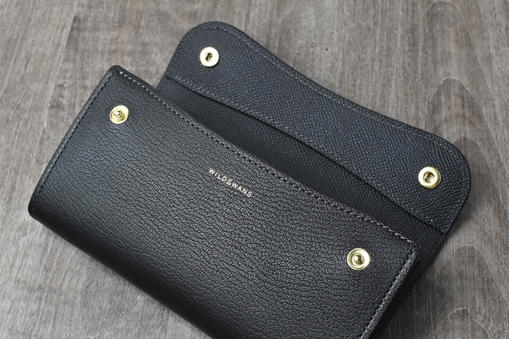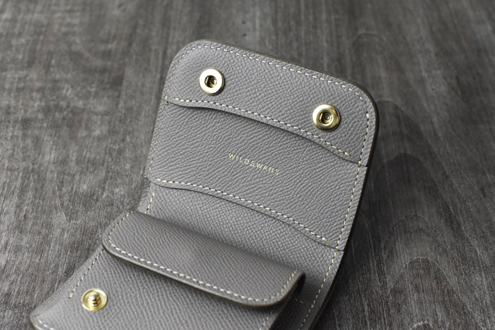 フラップを開けると、WILDSWANSのロゴとコインケースが現れます。
