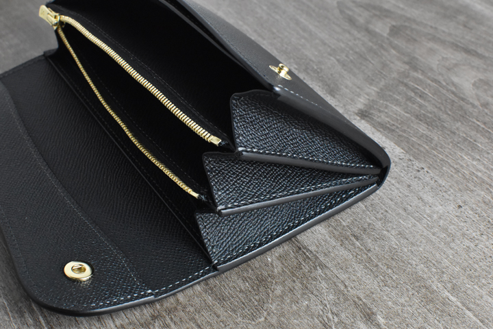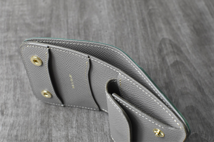 大きく開くコインケースは視認性をアップさせるだけでなく、