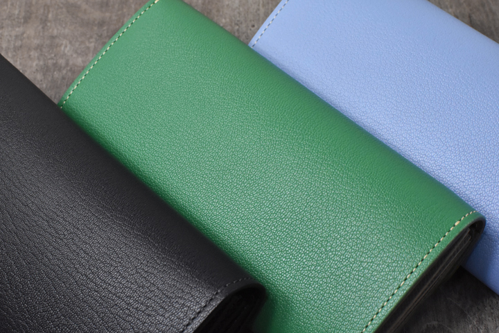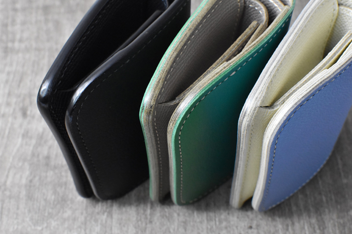 製品のコバ(縁)は、ブルーヴィスタとヴェールタンドルは染料を用いない素磨き、ノアールは黒い染料を用いて磨いています。