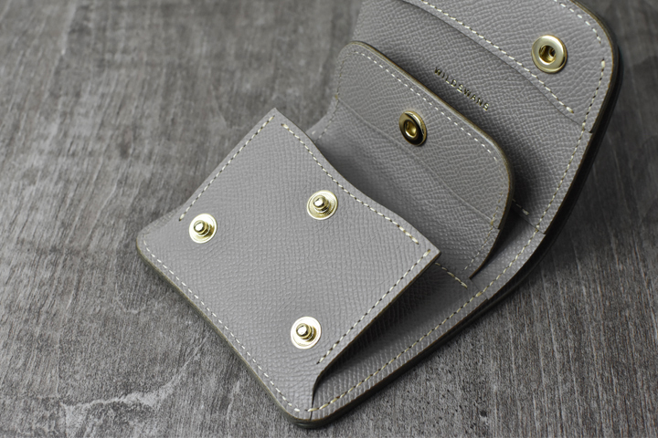 ※内装のカード収納部を可動させる際は、コインケースのフラップのホックを解除した状態で、フラップを指で掴んで可動して頂きますようお願い致します。フラップを閉じたままの状態でカード収納部を可動させますと収納時にコインケースのマチが正常に収まらなくなる可能性がございます。