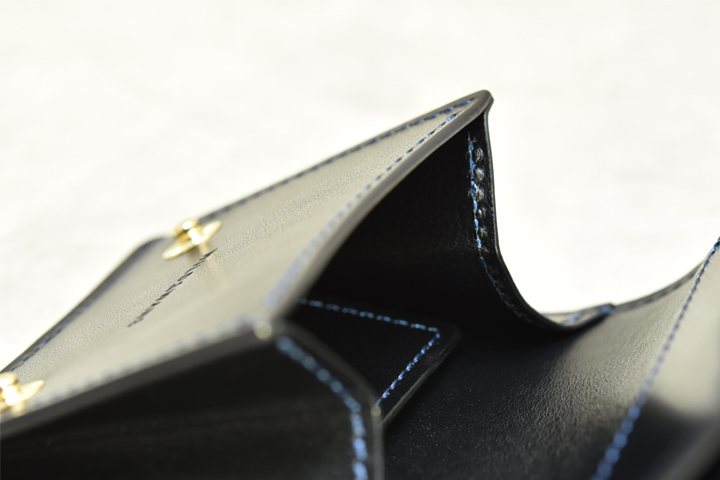 コインケースの両端にはマチが設けられておりますが、リニューアルによってマチの裏側には裏張り用の革が貼られ、メンテナンスのしやすさや、見た目にも高級感が生まれる仕様になっています。
