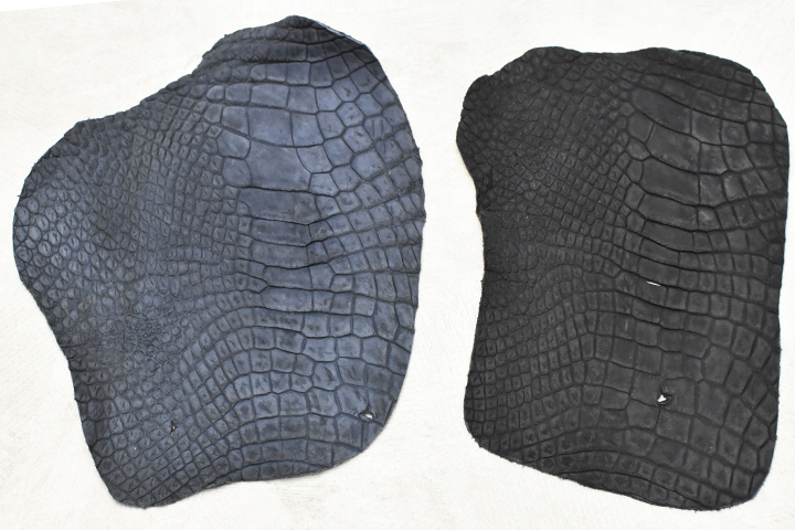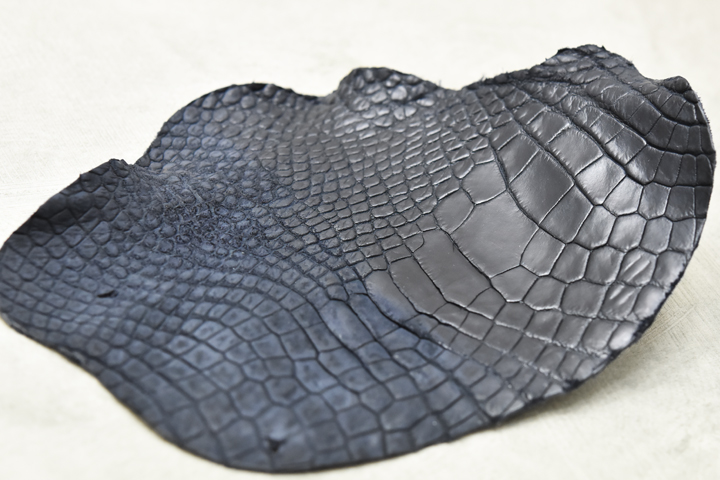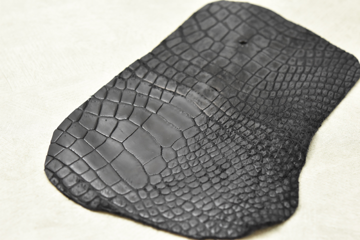 こちらは裁断の際に出たクロコダイルの端革です。今回はこれに部分的に摩擦をかけ、強制的に使い込んだ状態を作ってみます。