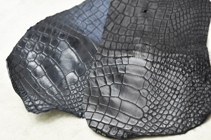 思わず撫でたくなってしまうような毛並みの良さで、爬虫類の皮革であることを忘れてしまいそうな程の印象の変わりようです。