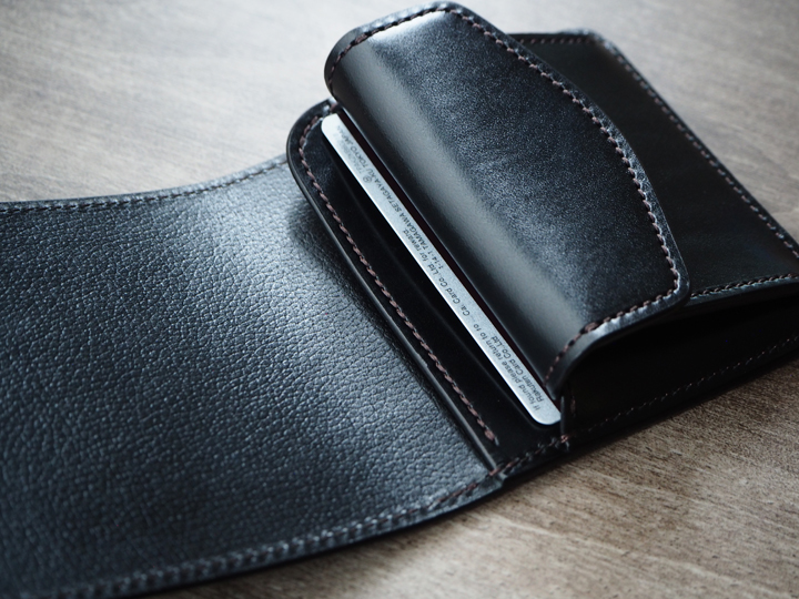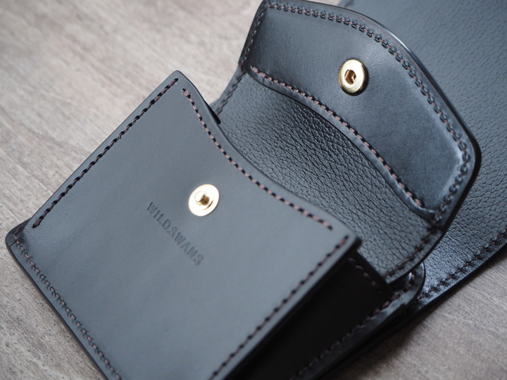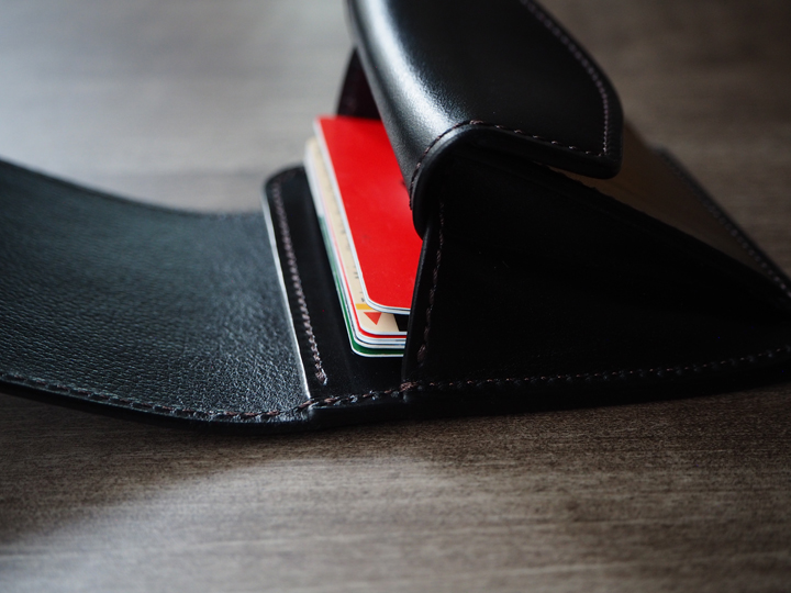 ボリュームの出やすい要素をなるべく省いたシンプルな構造ゆえに、カサ張ることなく、多くの紙幣、カード、コインを収納することができる優れたアイテムです。