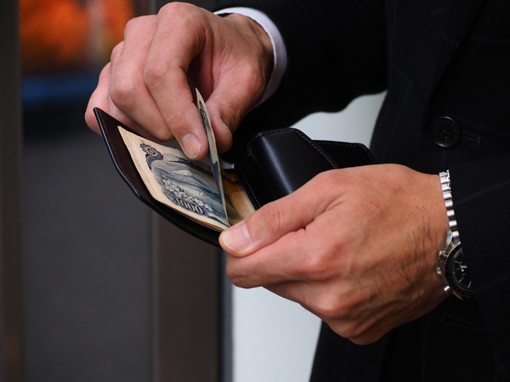 本体を開くと紙幣がダイレクトに見えてしまうことに抵抗を感じるお客様は、上画像のように紙幣を折り畳んで、外から見えないように収納することも可能です。