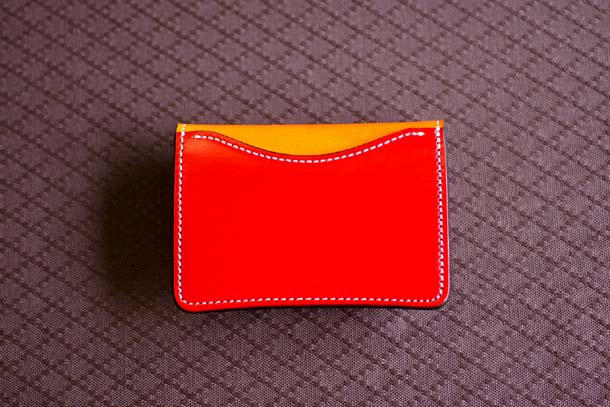 背面はこんな感じです。イタリアンレッドの上の白いステッチが格好良いですね。