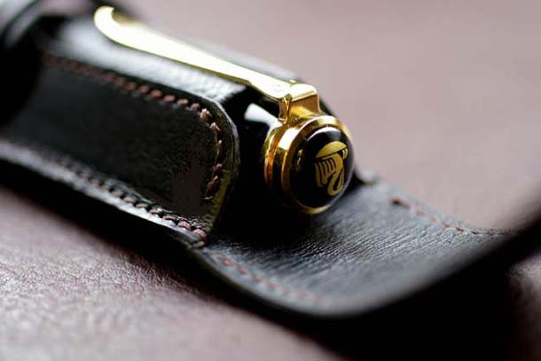 ペンクリップを挟む部分の革は、耐久性のある摩擦に強い型押しのカーフを使用しています。