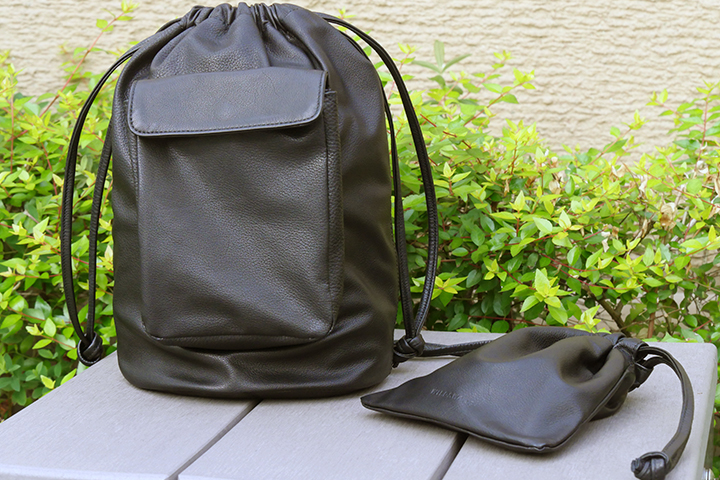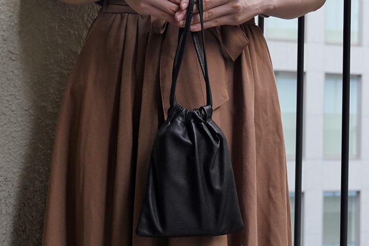 メイン素材にアノネイ社のラスティ―カーフを贅沢に使用した<ドローストリングバッグ>の先行予約販売を
