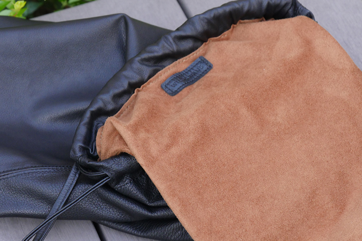 肌触りが良く、柔らかな毛足は中に収納して頂くものを保護する役目となり、革小物をいれ、バッグ自体を揉む事で乾拭きを行うのと同様の効果となります。