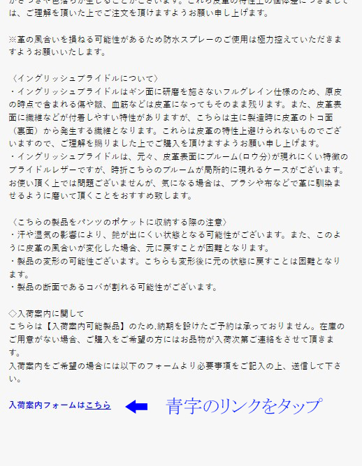 入荷案内対象の商品ページ内に入荷案内フォームへのリンクがございますので、お手数ではございますが、こちらから入荷案内のお手続きをお願い致します。