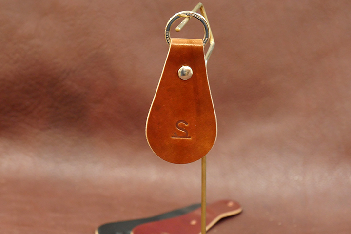 ホーウィン社のシェルコードバン一枚革仕立ての贅沢な靴ベラキーホルダーです。