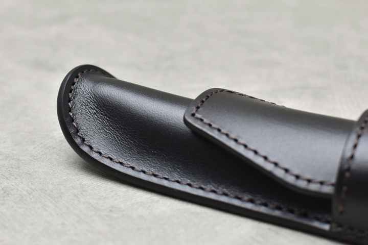 万年筆1本のみを収納するためのケースで、シンプルでありながら皮革の魅力を活かした技巧的な構造が特徴です。