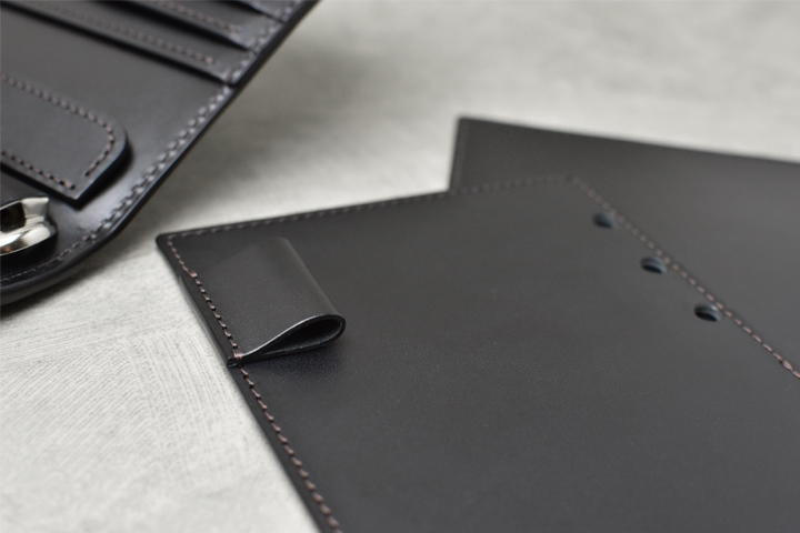 2枚の内の一枚はペンホルダーが付属しておりますので、細身のペン類を持ち運ぶことも出来ます。