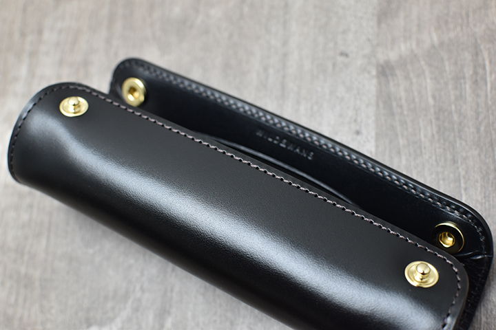 本シリーズ最初のステーショナリーアイテムのCYLINDER(S)です。サドルプルアップ一枚革の外装は、2箇所のホックで留められています。