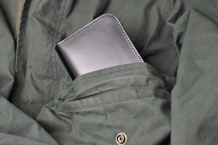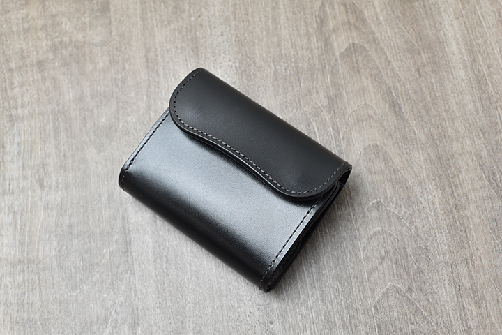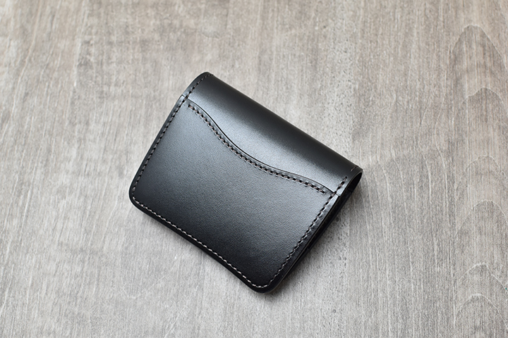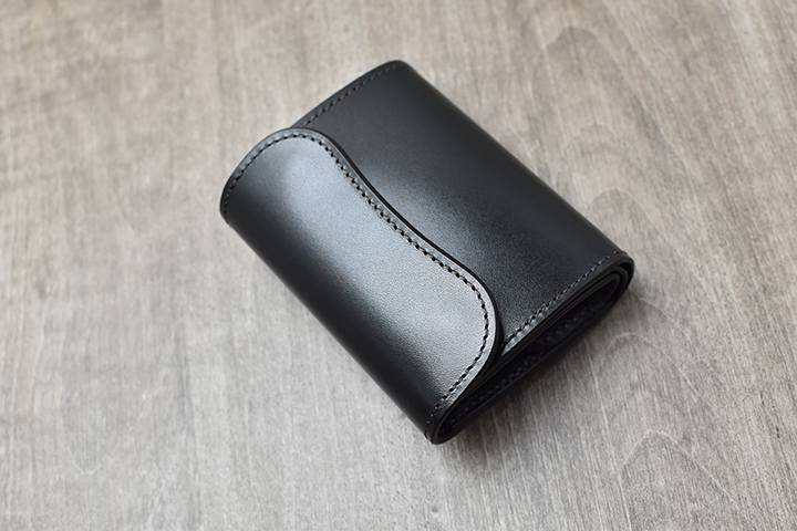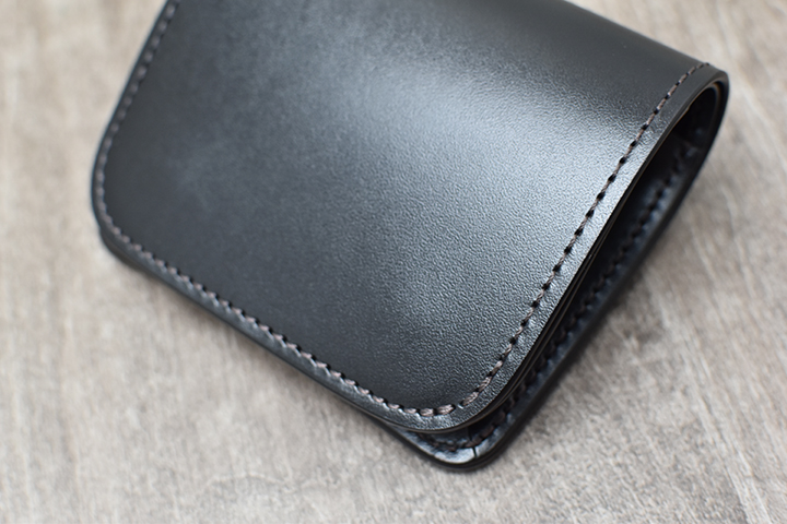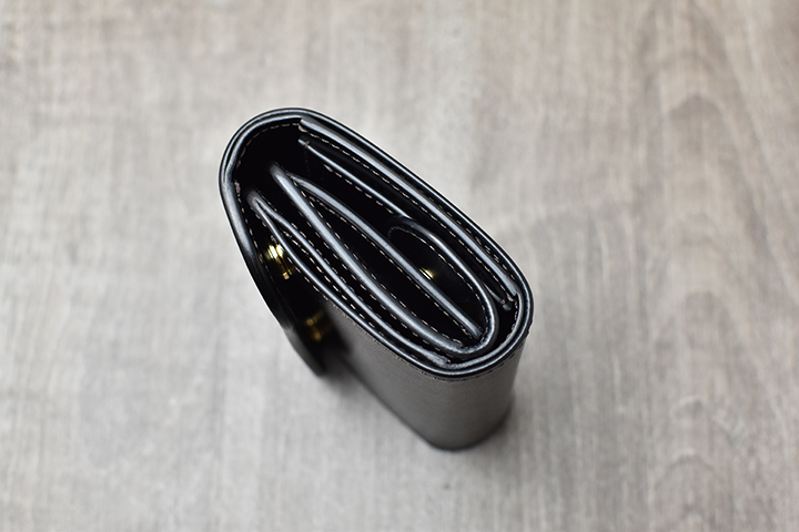 こちらも定番の三つ折り財布です。比較的小振りなボディのENOですが、側面から覗くと内部に大量の革が使用されていることが分かります。