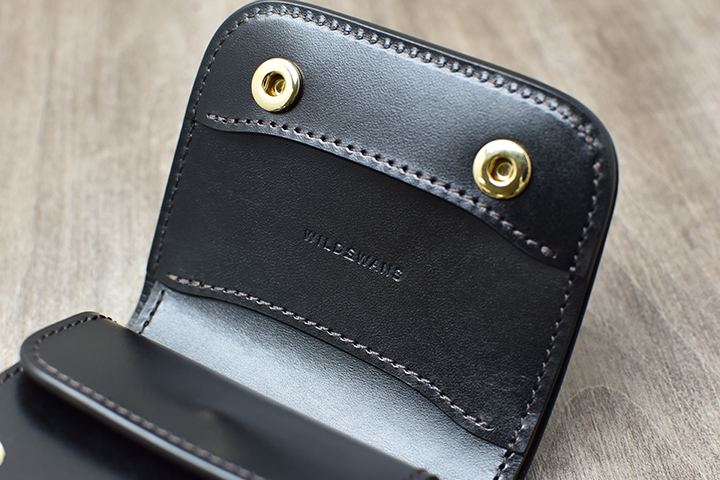 続いてコインケースです。十分な大きさなので、コインもゆとりをもって収納できます。ファスナパーツは、WILDSWANSではお馴染みのYKKエクセラファスナーを採用しています。丈夫で滑らかな引き心地を実現するクオリティの高いパーツです。