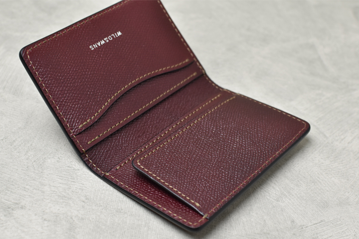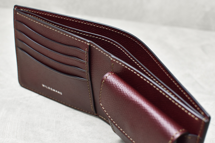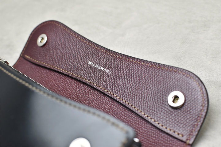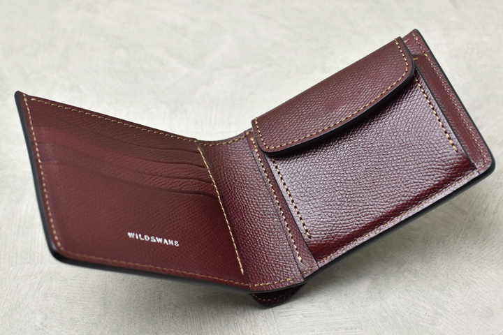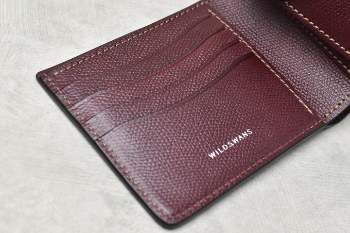 WILDSWANSには珍しく角が直角に切り落とされたようなシャープなデザインが特徴です。WILDSWANSの小銭入れ付きのラインナップにはもう一つGROUNDERというモデルがありますが、HENRYはGROUNDERよりもスリムで、全体的なデザインや内装の作りなども含め、フォーマル、ビジネスといったシーンでの使用をイメージしたモデルです。