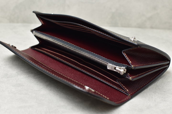 迫力の大型長財布です。見た目通りの充実した収納量を備え、細かな仕分けも容易なモデルで、大判ならではのダイナミックな経年変化もお愉しみ頂けます。