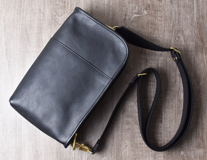 This is a classic shoulder bag made of Minerva Box of Italian cowhide leather. A compact item can hold a wallet, a plastic bottle, or a smartphone. It can be used for daily travel.