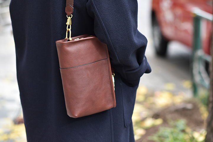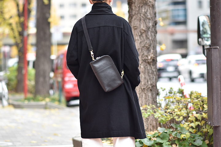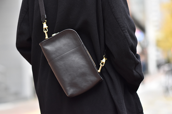This bag with many colors is now on sale at Online Shop. From left to right in photos are COGNAC, TOBACCO, GRIGIO, ORTENSIA, NAVY, and BLACK.