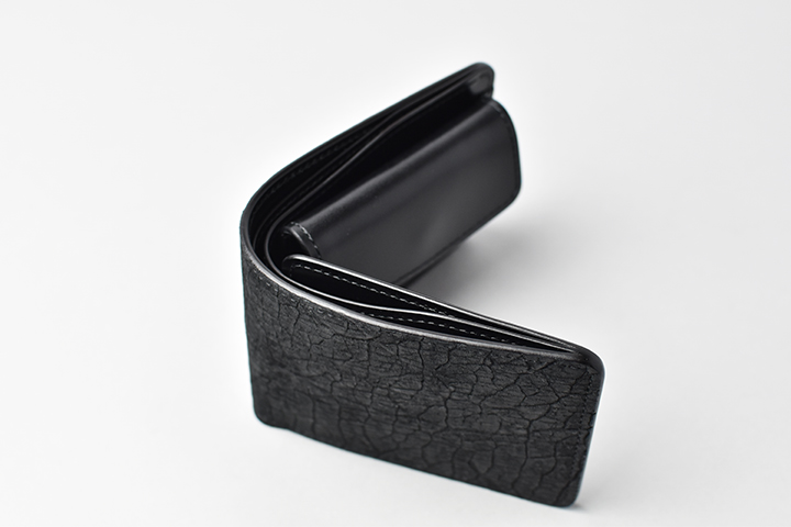 どなたにも扱いやすいオーソドックスな二つ折り財布・GROUNDER。外装のヒポポタマスと内装のサドルプルアップのコントラストが美しい特別なアイテムに仕上がりました。