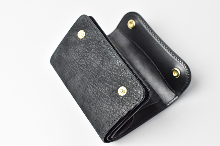 本シリーズではWAVEに次ぐ大きさのウォレットのBYRNE。屈強なヒポポタマスの迫力が蘇るような立体的ボディのアイテムです。