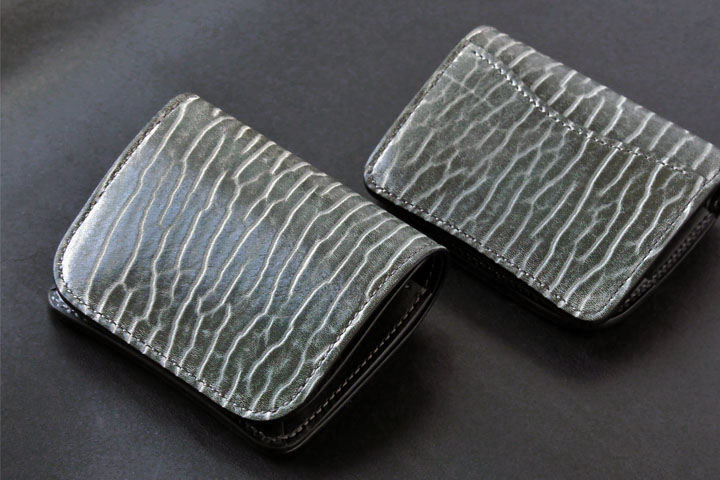 革表面には「頭張り」という皮革の凹凸の頂上部分に光沢を出すような仕上げが施され、ちらちらと光が反射する様子は水面を思わせます。