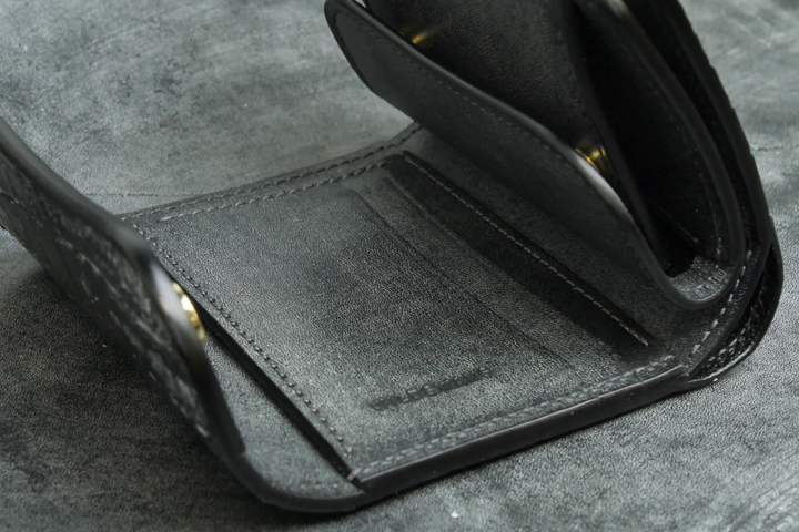 どこを触ってもシェルコードバンの質感を楽しめる上に、小銭の出し入れをする度にスタンプが覗き、シェルコードバン好きの心をくすぐります。