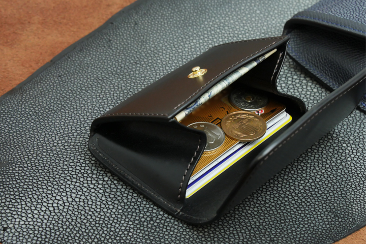 小銭やお札はもちろんのこと、クレジットカードや名刺なども収納できます。多くの場面で活躍する、頼もしいアイテムです。