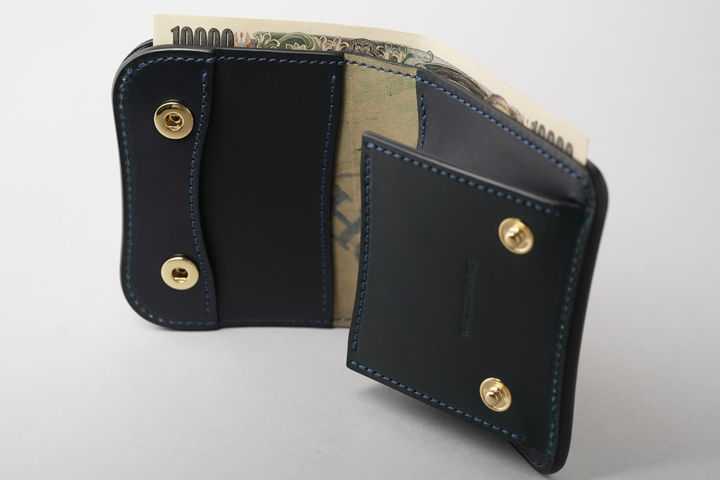 手のひらサイズながら硬貨、紙幣、カードと3種の収納を備えたオールインワンタイプで、初めてWILDSWANSのアイテムをお使い頂くといった方にも違和感なくご使用頂けるモデルです。
